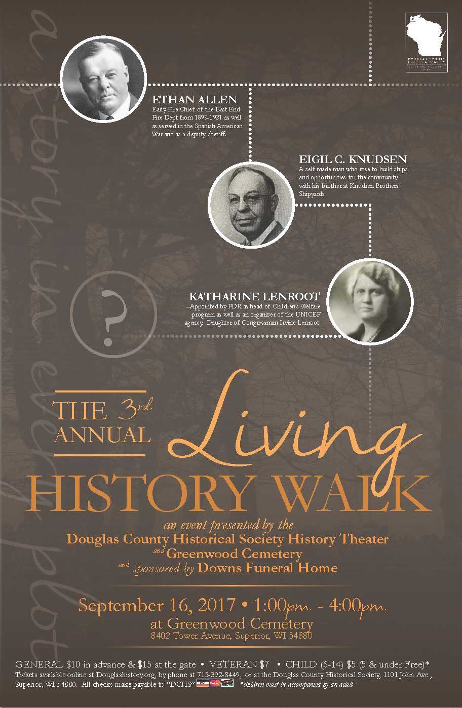 3rd Annual Living History Walk Tickets are $10 in advance, $15 at the gate, $7 Veterans, $5 for children 6-15, Children 5 and under are free. Living History Walk September 16th.